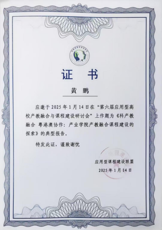【本网讯】1月14日至15日,第六届应用型高校产教融合课程建设研讨会在哈尔滨召开,ky开元集团官网《科产教融合 粤港澳协作:产业学院产教融合课程建设的探索》入选应用型课程建设联盟评选的优秀案例,粤港澳大湾区智慧冷链产业学院黄鹏教授应邀参加并作典型报告。