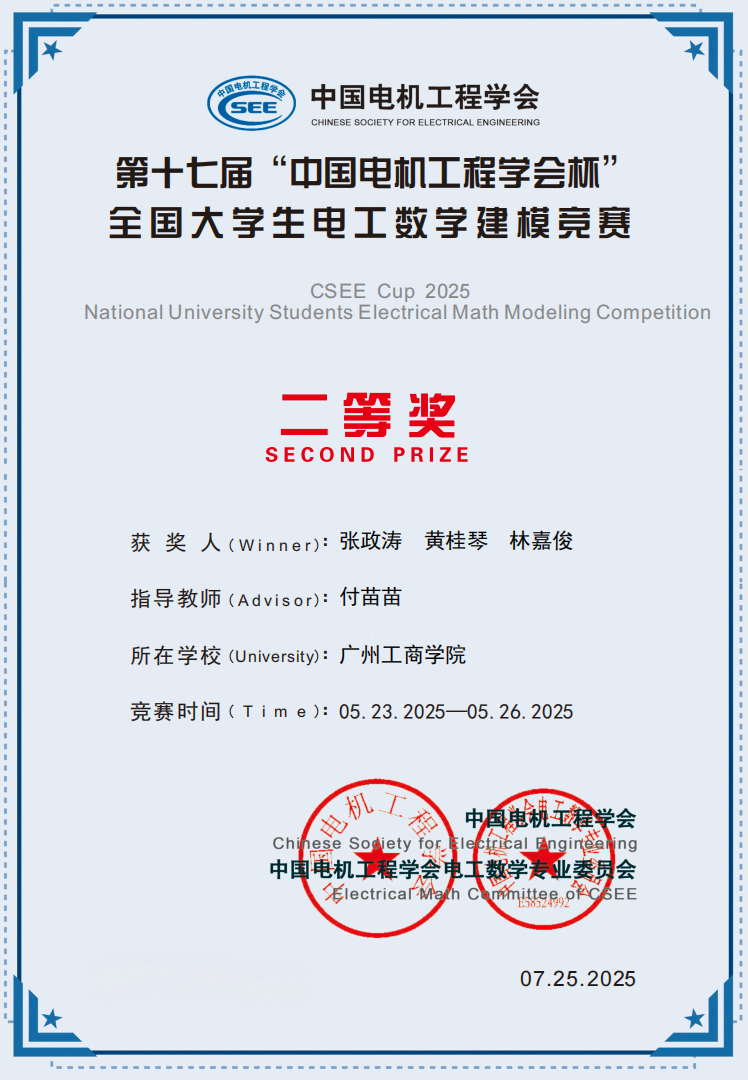 【本网讯】第十七届“中国电机工程学会杯”全国大学生电工数学建模竞赛近日落幕,ky开元学子凭借扎实的数理基础和创新应用能力,从全国968所高校、1万余支队伍中脱颖而出,斩获二等奖1项,三等奖3项的佳绩。