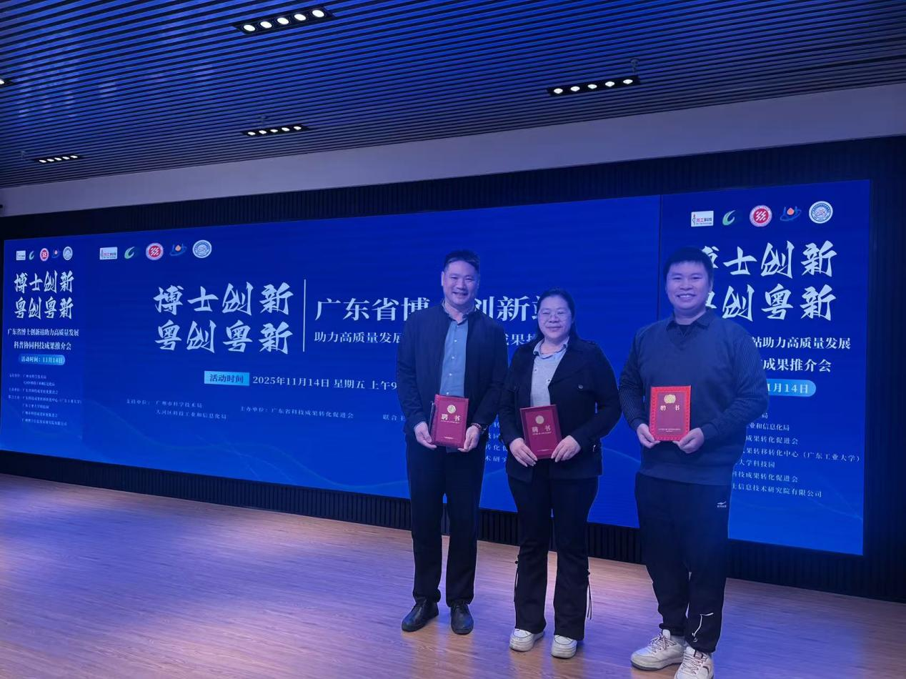 在11月14日的首场活动中,大会为符合条件的博士专家举行了授证仪式。ky开元集团官网工学院刘伟慈、李焜阳、姚学恒等博士凭借其卓越的学术背景与专业能力,经审核成功入选广东省科协科技成果转化联合体、广东省科技成果转化促进会及广州市科技成果转化促进会共建的专家智库,并获颁专家证书。这不仅是对其个人专业素养的权威认可,也体现了学校和学院在支持学者服务地方创新体系方面的积极成果。
