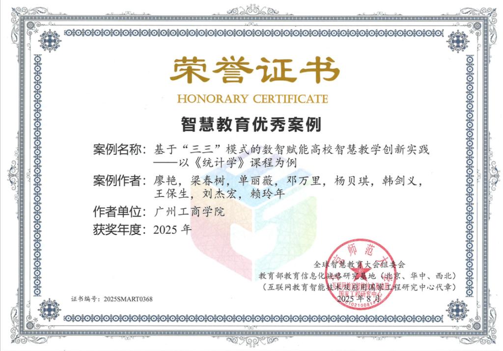 学校《统计学》课程智慧教学案例荣获2025年度智慧教育优秀案例