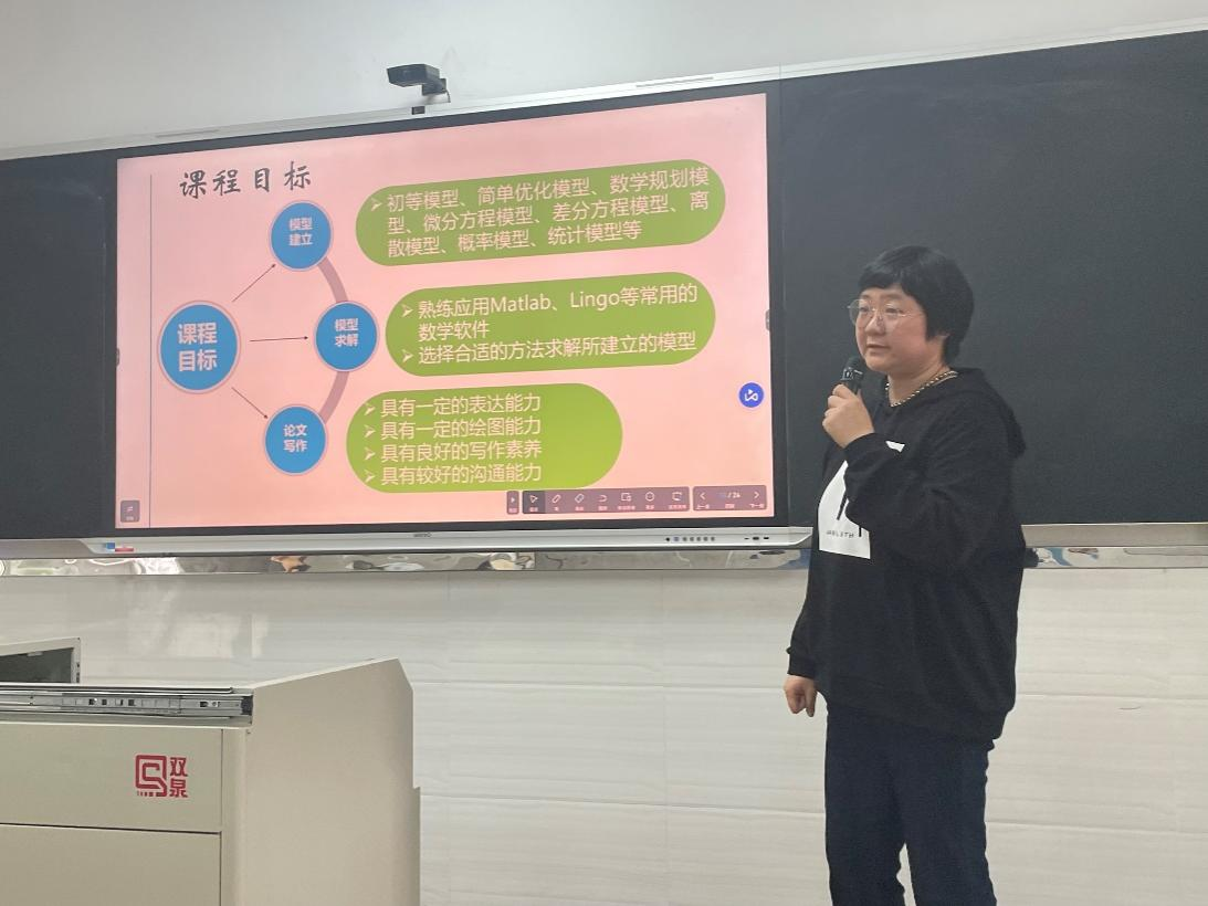 申报选修课的教师有乔希民、薛申芳、王宇,每位教师先对申报的选修课程定位、课程开设目标、必要性与可行性等说课和知识点试讲,然后专家针对汇报情况进行提问。乔希民老师的申报的课程是《数学文化与数学美》;薛申芳老师申报的是《Lingo软件及其应用》;王宇老师申报的是《数学模型》。