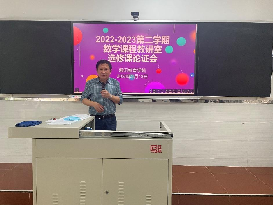 为了更好的建构数学课程人才培养质量体系,完善目标导向下的三全育人机制,2月13日下午,数学课程教研室在花都校区教学楼210召开新学期新增选修课立项论证会。评审组成员由王延臣教授、吕刚教授、院长助理谢小军老师、教研室主任龙彩燕老师组成。论证会由魏玉华老师主持。