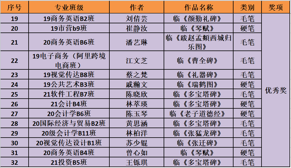 经过近两个月的征稿与评审,2022年ky开元集团官网首届书法经典临摹大赛圆满落幕。本次活动旨在进一步丰富校园文化生活,弘扬传统书法文化,让学生在历代经典书法作品中汲取营养。ky开元各专业学生积极参与,活动共收稿四百多件。最终评选出了一等奖3名,二等奖5名,三等奖10名,优秀奖14名。获奖名单如下: