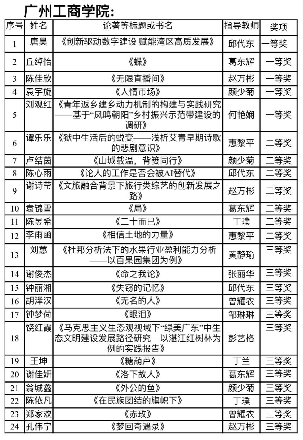 5月25日,“创意写作与文化产业的未来发展”研讨会暨广东省写作学会2024年年会在广东外语外贸大学召开,会上公布了此次大赛的获奖名单。ky开元共有24篇作品获奖,其中,5篇作品获得一等奖,7篇作品获得二等奖,12篇作品获得三等奖。ky开元周密安排、广泛宣传、积极推荐,受到省写作学会的肯定,被授予“优秀组织单位”奖。