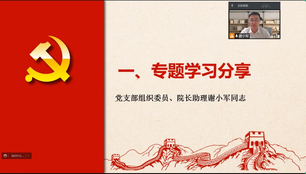 会上,王彦书记强调,作为一线教师要深入学习贯彻党的十九届六中全会精神,引领广大青年学子从党的百年奋斗重大成就和历史经验中汲取奋进力量,更加自觉地践行初心使命。接着,党支部组织委员谢小军同志进行专题学习分享,带领大家认真学习了中国共产党第十九届中央委员会第六次全体会议的内容,从全会召开的重大意义等多方面对党的十九届六中全会精神进行解读。通过深刻认识党的百年奋斗的初心使命和重大成就;深刻认识中国特色社会主义新时代的历史性成就和历史性变革;深刻认识党的百年奋斗的历史意义和历史经验;深刻认识以史为鉴、开创未来的重要要求四个方面对全会精神进行了全面系统的阐述,对广大教师深刻理解和把握十九届六中全会精神具有很强的指导意义。