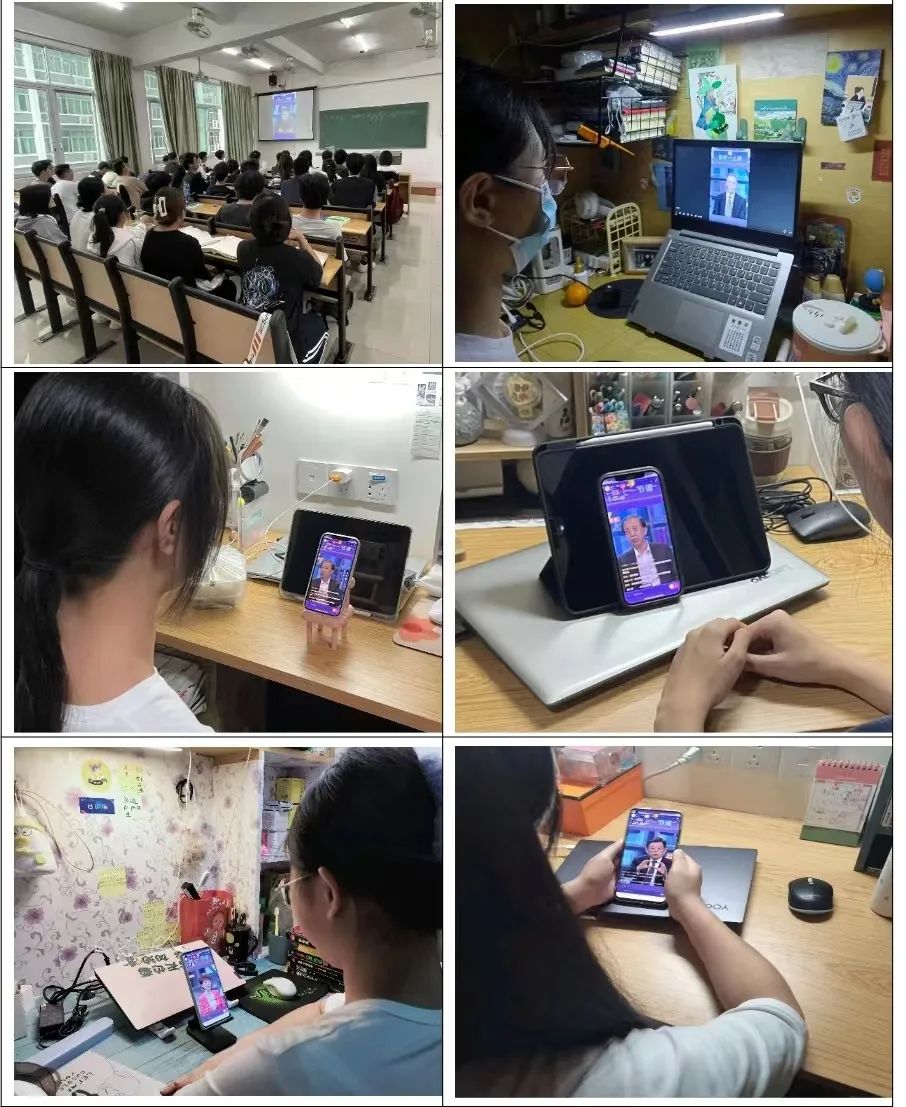 此次讲座共分为 5 期,从 2022 年 11 月 18 日——11 月 22 日每天晚上 18:00 播出,每期时长 30 分钟,结束后会循环重播至第二天 12:30 结束。为此,有的班级同学通过手机进行签到学习,有的班级则将同学们组织召集在教学楼教室共同观看学习。本次讲座课程有教育部关工委郭振有副主任讲的《孝敬父母,尊敬长辈,尊重他人是做人之本》、中国人民公安大学教授博士生导师王大伟讲的《健康上网,防止网络诈骗》、首都医科大学附属安定医院郭小兵教授讲的《关注心理健康、如何预防焦虑症和抑郁症》、上海政法大学博士、南京警察学院教授马勇讲的《珍爱生命,远离黄赌毒》和教育部高等教育社会科学发展司王炳林主任讲的《历史实践证明,《没有共产党就没有新中国》。同学们每天都利用快手软件在线观看爱国教育及学生安全健康教育视频,学习结束后同学们也充分利用课余时间形成小组及个人继续深入学习相关内容,并积极参加同步组织的观后感主题征文比赛,纷纷记录自己学习的心得和观后感,以达到激发学生的爱国情怀,营造良好的安全氛围,创建平安校园,增强学生安全健康意识的目的。通过对“爱国教育与学生安全健康教育”专题讲座的学习,全体学生受到了爱国精神的教育,传承以伟大建党精神为源头的中国共产党人精神谱系,进一步厚植了同学们的爱国主义情怀,增强了学生们的安全防范意识和心理素质,对培养学生健全的人格、推进校园安全和心理健康教育工作具有积极作用。