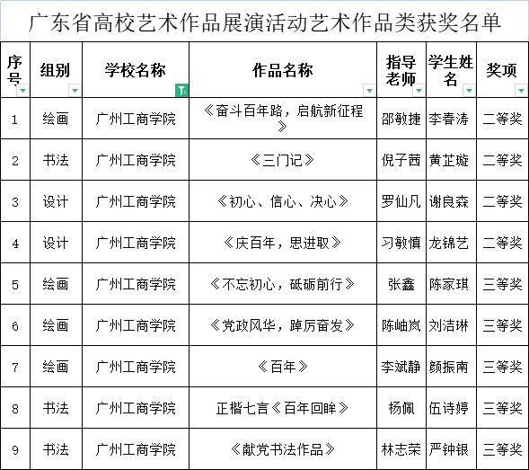 自今年3月启动全省高校艺术作品征集展演活动以来,学校艺术教育工作领导小组深入贯彻落实“以德为行 以学为上”教育思想,在全校范围内组织征集与评选工作,共收集艺术表演类作品14件,艺术作品类作品31件,彰显了学校浓郁的美育氛围。学校艺术教育工作办公室组织专家评审,最终推荐9件艺术作品类作品,5件艺术表演类作品参加全省高校艺术作品征集展演复评活动。最终,获奖成绩喜人。