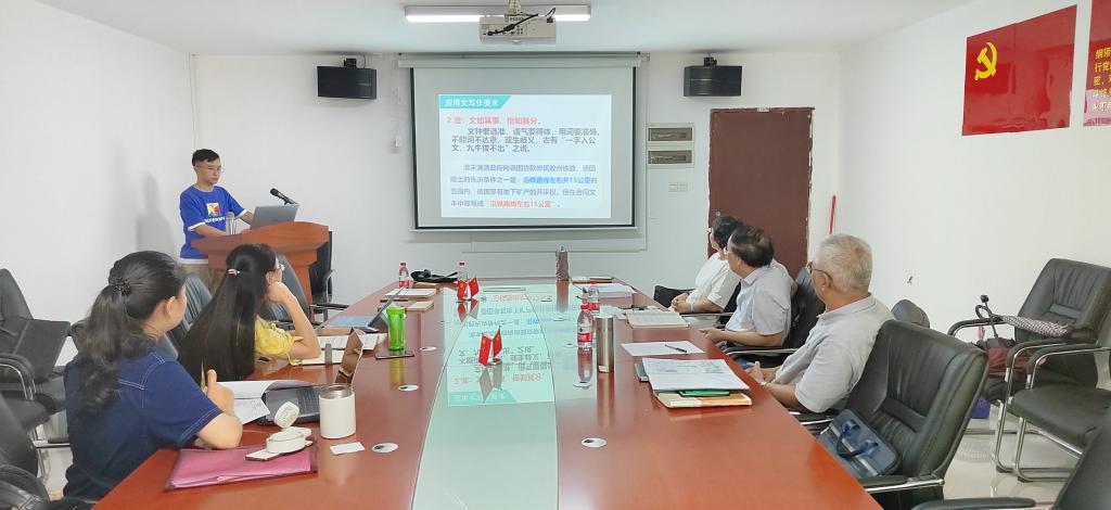 会上,徐翔老师介绍了本次备课会的主要内容,对本学期的教学任务和工作计划进行了周密的安排,并引导任课教师针对新学年学生状况、教案与大纲、教学案例的选择与超星教学平台的使用情况四个方面进行集中研讨。任课教师们积极参与研讨,各抒己见。首先,学生状况方面,与会教师表示,新生开课以来,总体精神面貌较好,课堂氛围活跃。尤其是课前演讲的顺利进行,有利于提高学生的听说能力。其次,与会教师结合课程教学大纲与学生以往写作的定势思维,在把教学难点放在对应用文写作语言与格式的规范性上达成共识。在教学内容上,教学经验丰富的教授们纷纷强调,文科教学尤其是应用文写作教学,需注重理论知识的正确性与科学性,经得起考验。与会教师还就各自授课专业学生所使用的教学案例进行了分享与交流。最后,徐翔老师在了解任课教师对线上教学平台的使用程度后,对超星教学平台考勤、作业、分组等功能进行了现场演示。