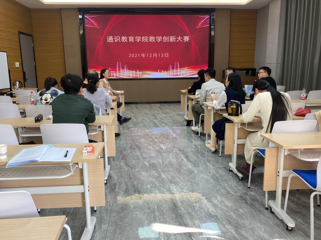 为建设高质量教育体系,深入推动通识教育教学改革,全面推进思政课程与课程思政同向同行,推动学校信息技术与教育教学融合创新发展,打造学校教学改革风向标,12月13日上午,通识教育学院于花都图书馆6楼教师发展中心培训室举办教师教学创新大赛,11名来自教研室的青年教师参加了比赛。通识教育学院院长姜云霞教授、时凌教授、周杰教授、王彦教授担任大赛评委。