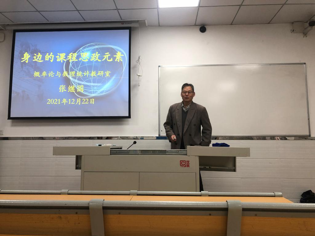 为进一步推进课程思政建设,促进课堂教学高质量发展,12月23日下午,概率论与数理统计课程教研室在花都校区教学楼208教室召开了课程思政建设专题研讨会。教研室全体教师参会,教研室张继国教授作专题报告。会议由教研室主任龙彩燕老师主持。