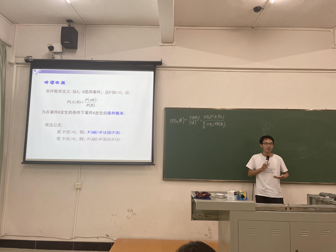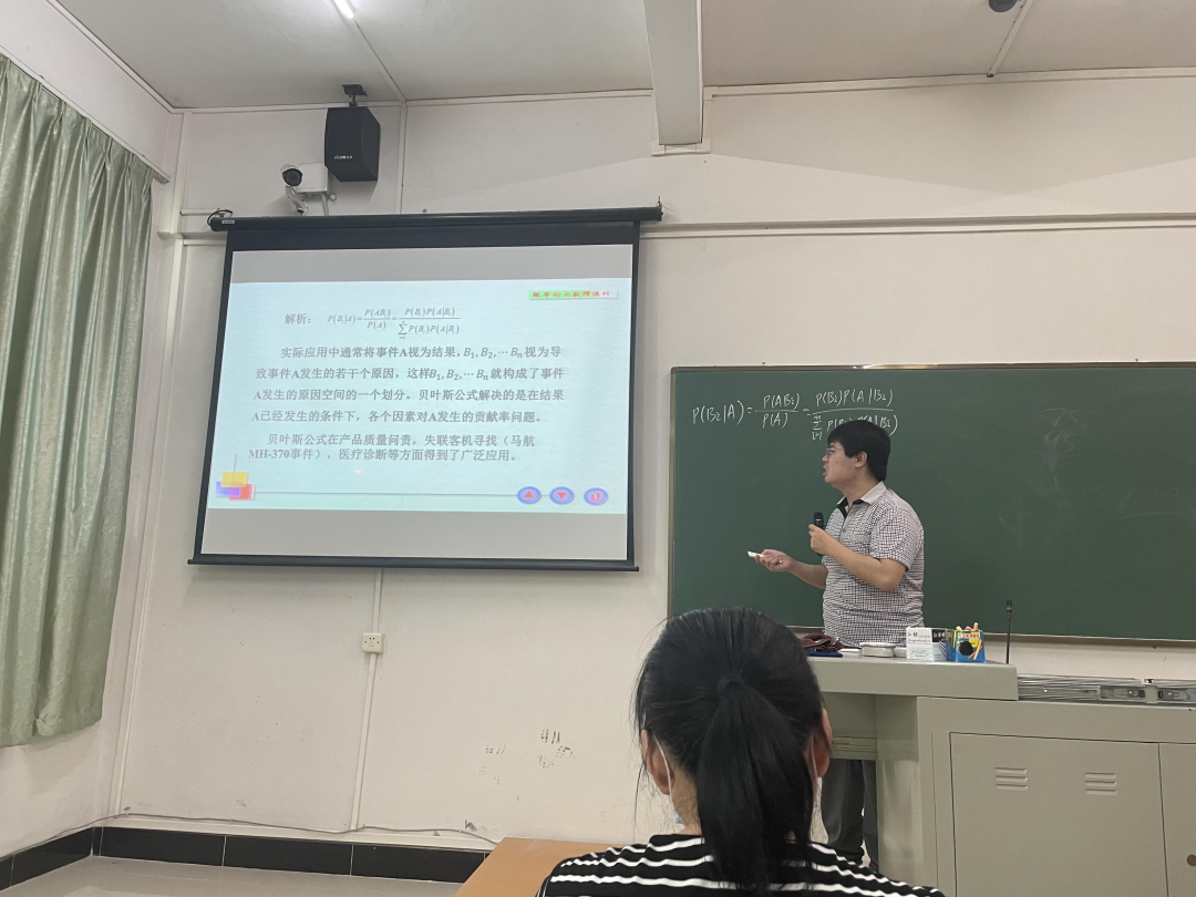 接着,邓誉老师采用“全球疫情失控”视频引入贝叶斯公式新课为大赛拉开帷幕,运用概率知识讲解产品正、次品验货、患疾病几率、马航失联客机搜索问题,课程内容丰富有趣,充分激发学生学习的积极性,体会概率论的魅力;