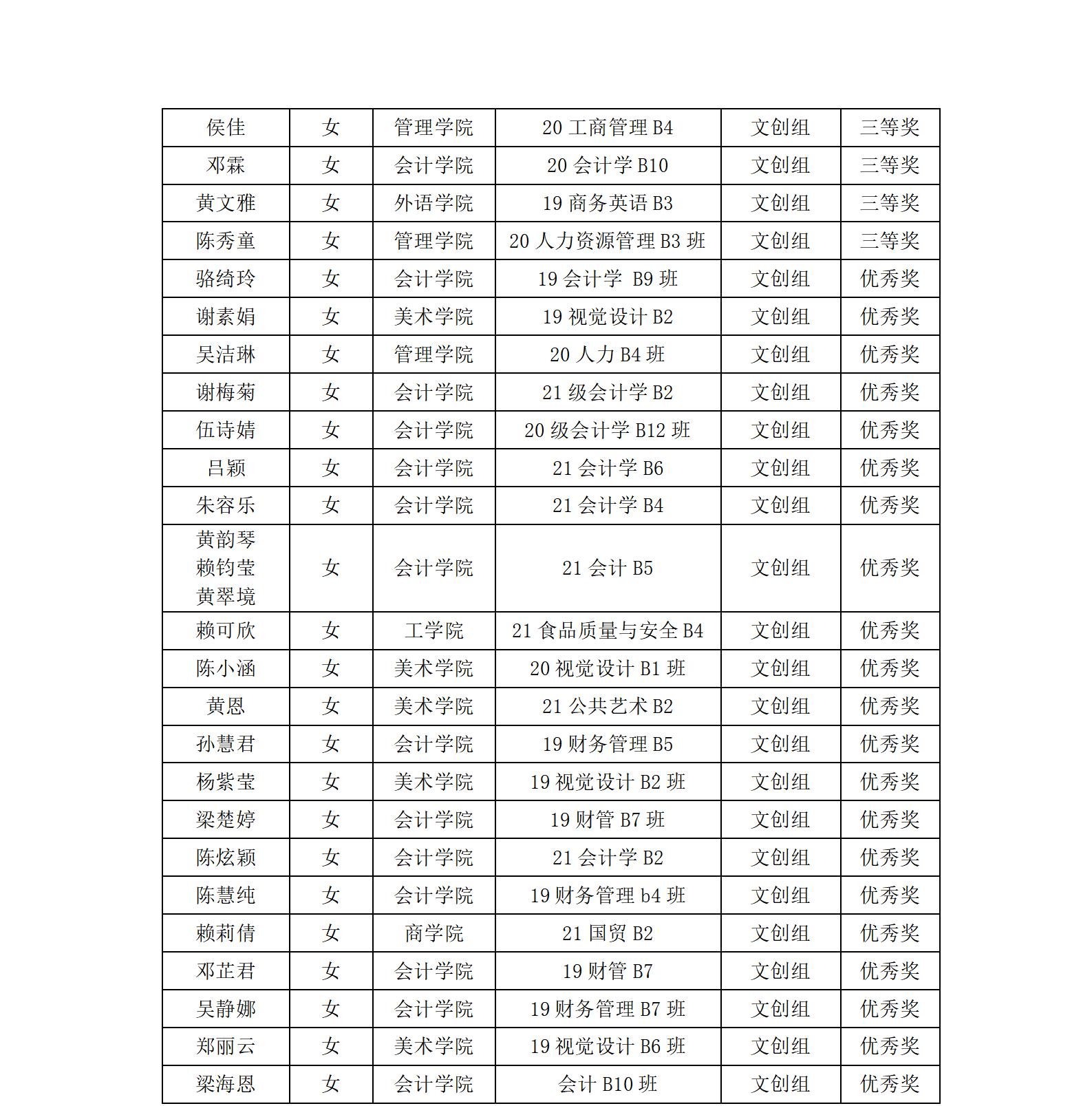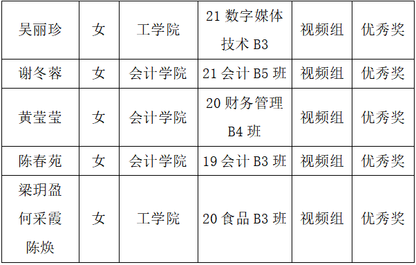还有以下获得优奖的同学