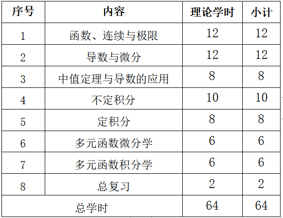 会议的第三项议程由张琼老师公布经课程小组研讨后[111010014]高等数学课程各章节的课时分配。具体分配如下表: