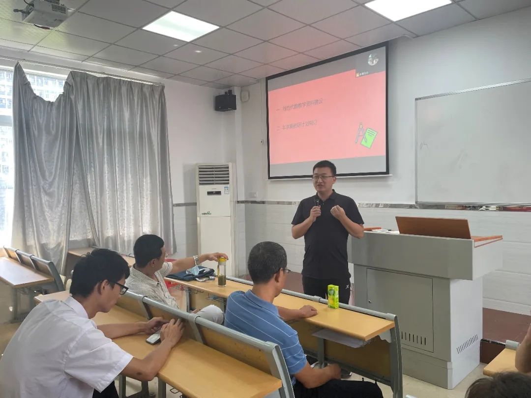 本次会议有两项议程,第一项议程是线性代数教学资料建设。魏玉华老师强调,高年级学生将从8月29日开始上课,负责线性代数课程的老师需要在本周整理好课程教学资料,包括教学大纲、教学进度表、教案。魏老师要求各位老师注重内容的简明性,结合学生的实际情况与专业要求编写教案,在此基础上挖掘课程中的思政要素,进一步提高教学效果。