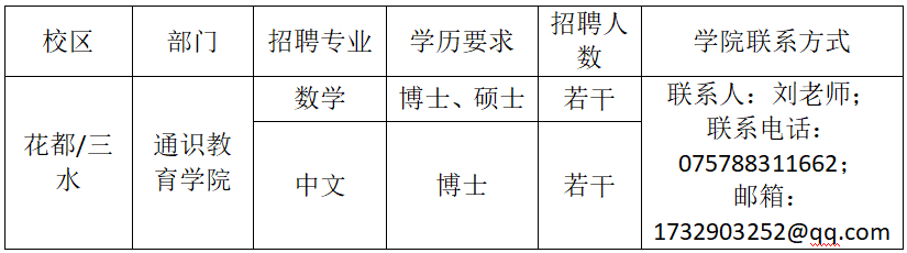 ky开元集团官网2023年通识教育学院数学和中文教师招聘启事