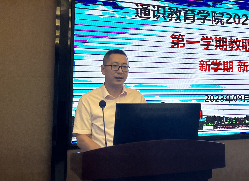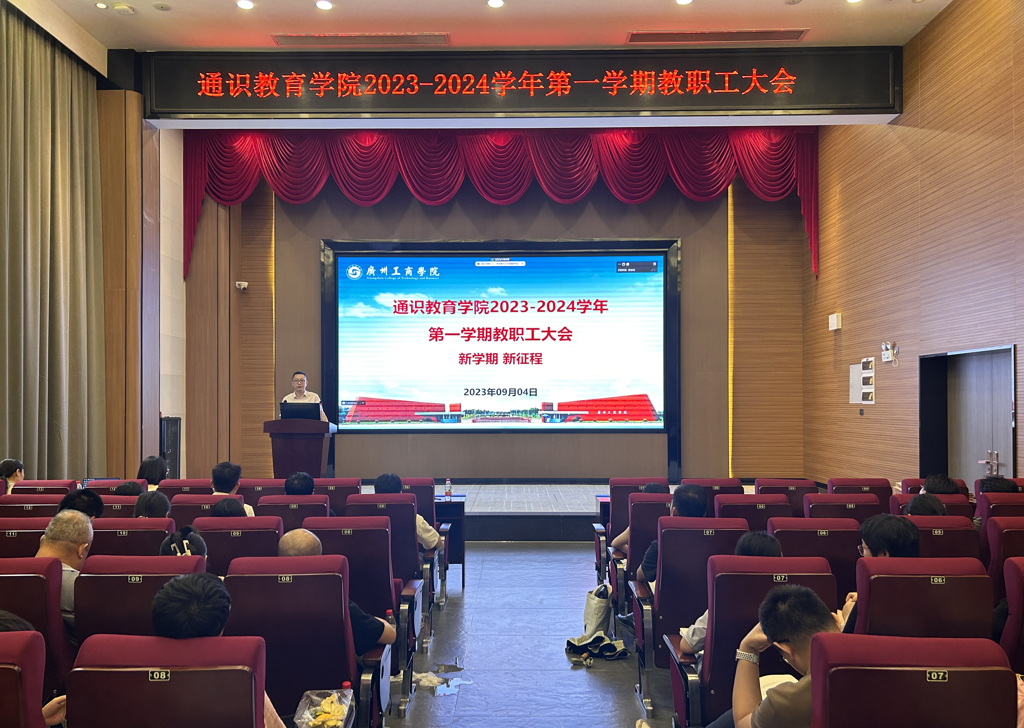 金秋九月,承载着新学期的喜悦,2023年9月4日下午通识教育学院在花都校区图书馆416报告厅召开2023-2024学年全体教职工大会。大会以线上线下相结合的形式召开,学院党支部书记、学院院长邢传国及学院全体教职工出席会议,办公室主任李青主持会议。