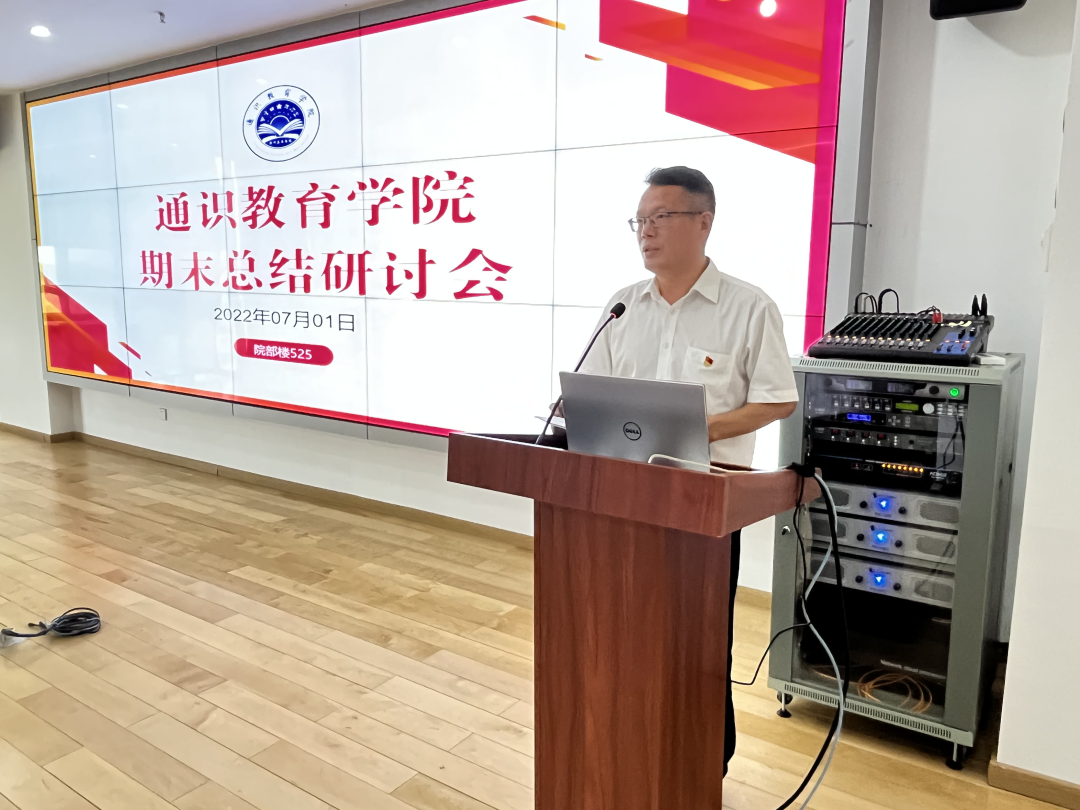 为全面总结学院工作,提升教育教学质量,推动通识教育高质量发展,2022年7月1日,通识教育学院在院部楼525会议室召开2021-2022学年工作总结研讨会。学校党委副书记、副校长朱特威,质评中心易亚军主任、特邀专家李清刚研究员等专家及通识教育学院全体教职工参加了此次会议。会议由校长助理、通识教育学院院长黄鹏主持。