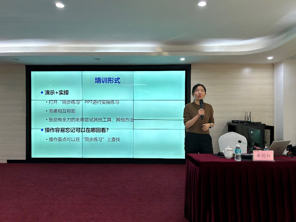 11月24日的培训,由学校教务处教育技术中心培训讲师麻晓林老师主讲,讲解如何高效利用PPT进行课堂教学的方法和技巧。通过实例演示,麻老师展示了如何制作简洁明了、重点突出的PPT,使参训教师们深入了解PPT在课堂教学中的重要性和优势。同时,每个学员在培训过程中进行现场实际操作和练习,完成PPT修改。