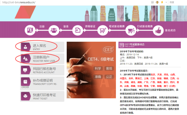 2.全国统一报考网址为:http://cet-bm.neea.edu.cn