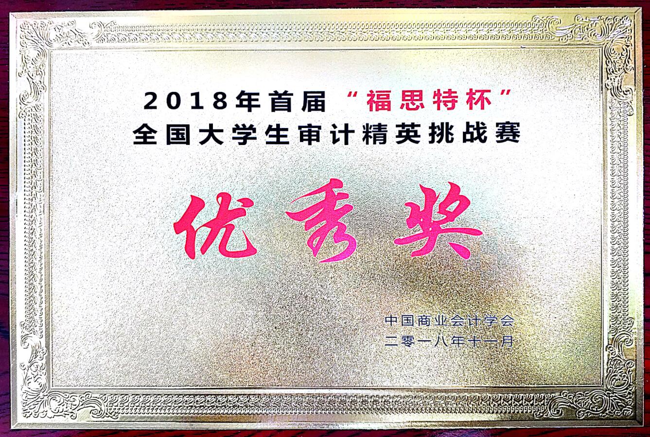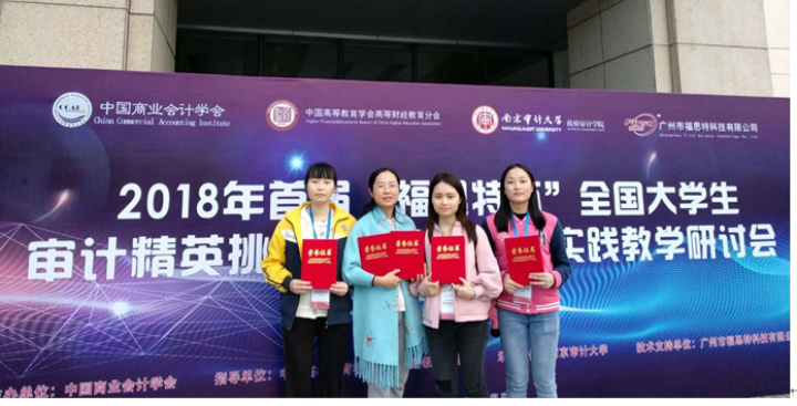 2018年11月10日,首届“福思特”杯全国大学生审计精英挑战赛在南京审计大学隆重举办,由会计系谢淑贞、曾燕秋、叶嘉欣三位同学组成的ky开元集团官网代表队在高玉莲副教授、周福萍老师指导下,喜获全国优秀奖。