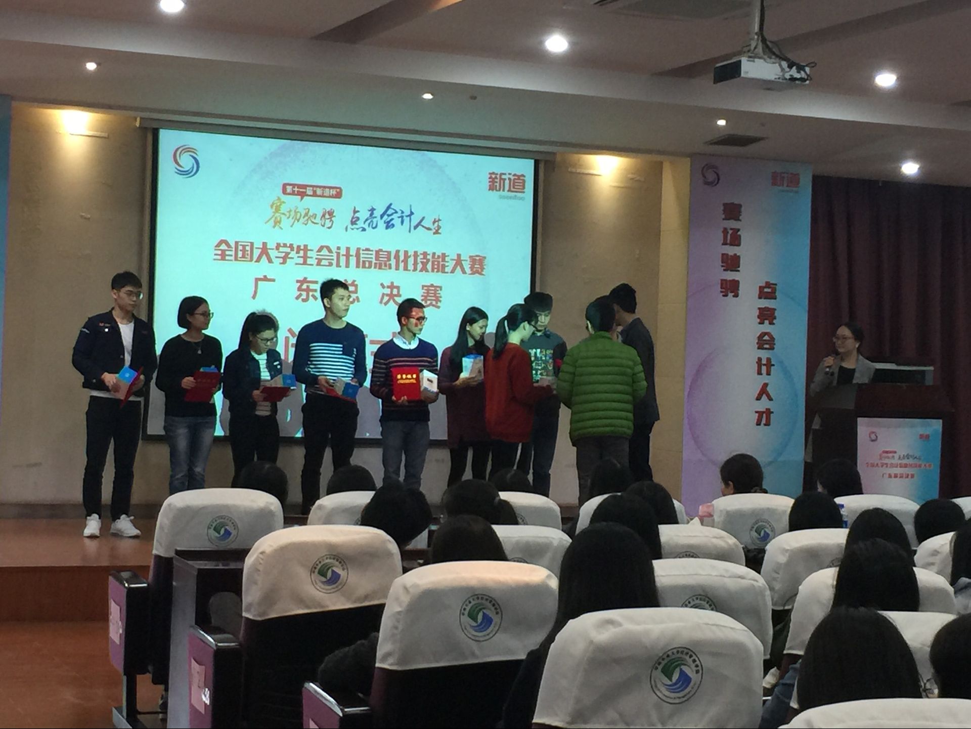 2017年11月19日,由工业和信息化部人才交流中心主办,新道科技股份有限公司承办的第十一届“新道杯”全国大学生会计信息化技能大赛“全国联赛”在华南农业大学如期举行。在会计系副主任高玉莲主任领导下和会计学教研室主任周福萍老师指导下,专职教师原虹、祝镇东、庞美艳及刘雅男老师积极组织学生备赛,通过半年多时间的艰苦训练和层层选拔淘汰,最终选出15、16级会计学及财务管理专业的16位学生参赛。