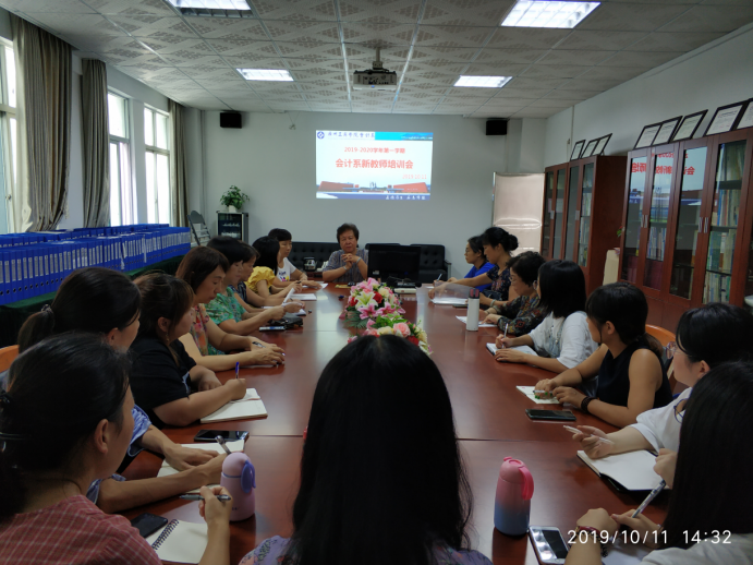 2019年10月11日星期五下午,会计系在三水校区系部楼313会议室举行会计系新教师培训会。2019年1月1日后入职的所有青年教师和高职称教师全部出席此次会议。