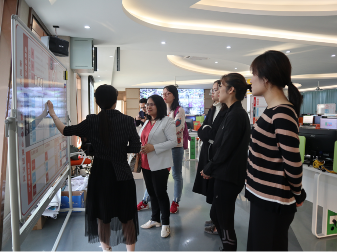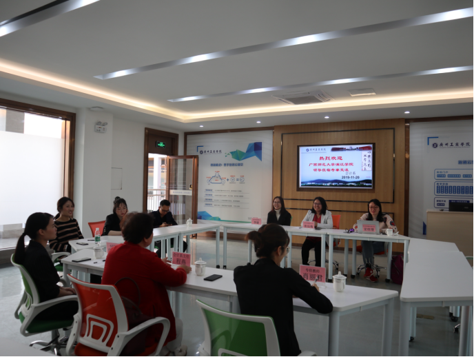 在智慧教室交流时,系主任程燕教授向客人简要介绍了学院发展历史、办学特色、专业设置等基本情况,随后双方围绕着会计系的师资队伍、课程改革、实践教学、人才培养方案、校企合作和实验实训室建设与管理等方面进行了深入交流和探讨。