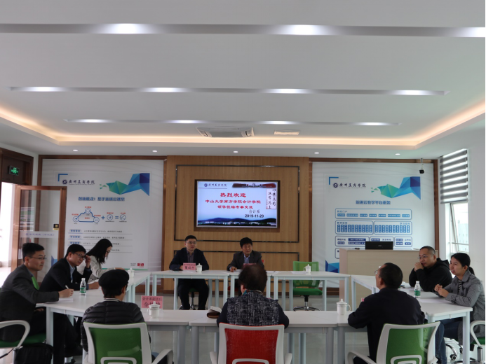 2019年11月29日上午,中山大学南方学院会计学院卫建国院长一行六人到ky开元考察交流。会计系主任程燕教授、全桂艳副主任等接待了卫建国院长一行。