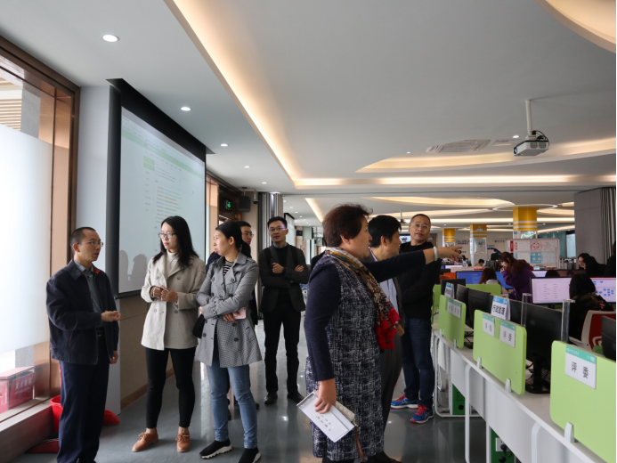 然后,全桂艳副主任带领来访嘉宾参观新商科服务大厅,来访嘉宾对全仿真的模拟环境赞叹不已。