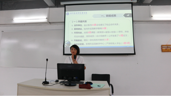 会计系全桂艳副主任分别从校企合作的数据成果、特色成效、开拓创新、努力方向这四个方面进汇报,全主任表示会计系的校企合作要做大做强,并在合作的形式、内容、规模和层次上再上新台阶。