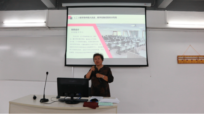 会计系主任程燕教授从会计系的历史沿革、基本概况、主要成绩、办学特色、存在问题和发展目标这六个方面进行汇报。程主任表示要以“国标”要求为基点,提高教学水平、人才培养质量,把会计学、财务管理专业办成特色鲜明、优势突出、符合区域经济需要的高质量应用型本科专业。