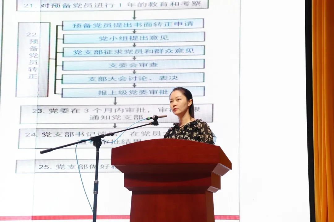 王萌老师对20级新生展开入党教育,她向新生详细地介绍了入党的流程。