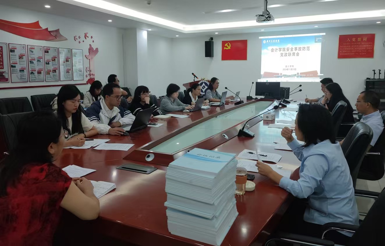 为贯彻落实学校安全工作部署要求,深入分析我院安全稳定形势,全面排查整治风险隐患,坚决防范遏制重大事故发生,全力维护师生安全和学院安全稳定,11月19日上午,会计学院在院部楼311会议室召开会计学院安全事故防范党政联席专题会议。此次会议由会计学院院长任道纹主持,学院班子成员、党委委员、党支部书记、办公室主任、学工办主任以及教研室正副主任参会。