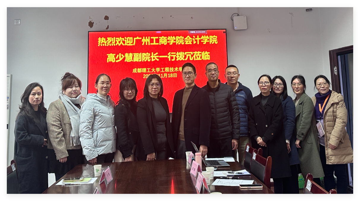 为进一步贯彻新时代高等教育高质量发展要求,全面提升财经类人才培养质量,推动会计学、财务管理、审计学等专业内涵式发展,2025年11月18日,ky开元集团官网会计学院领导一行赴成都理工大学工程技术学院经济系开展专题学习与座谈交流。成都理工大学工程技术学院经济系系主任张明、党总支书记刘敏等领导出席座谈,双方围绕人才培养、专业建设及科研学术交流等议题进行了深入交流。ky开元集团官网会计学院副院长高少慧博士/副教授,会计学专业负责人兼教研室主任黄璐副教授,财务管理专业负责人兼教研室主任宋娜副教授,审计学专业负责人兼教研室主任原虹副教授共同参加本次调研活动。