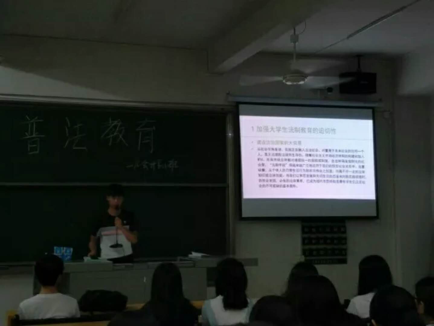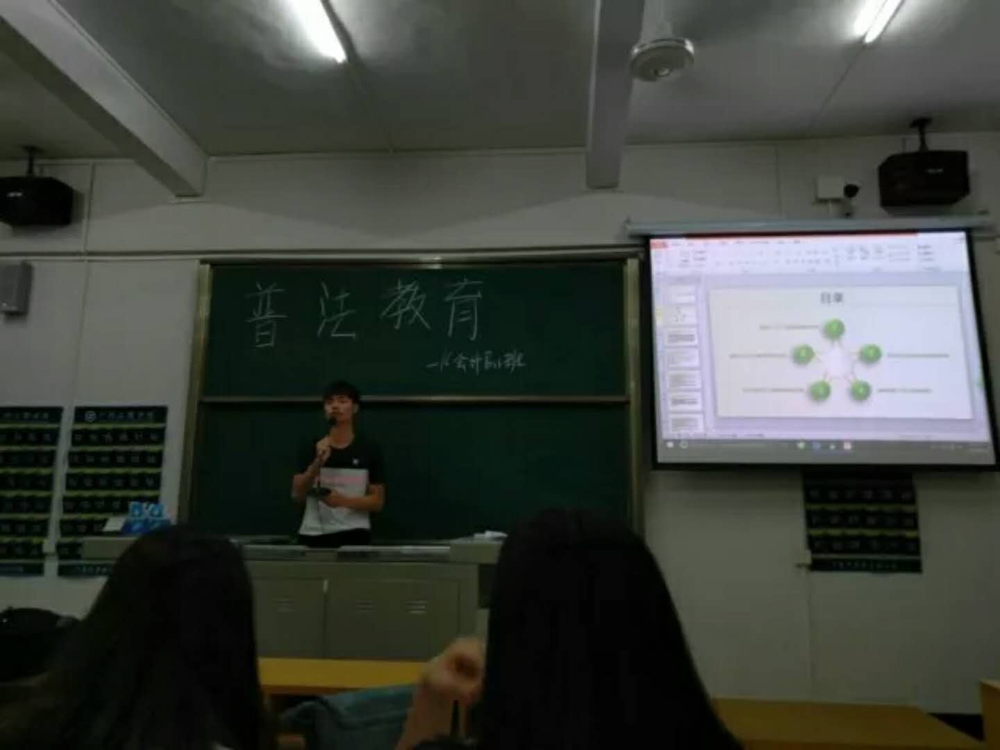 会计系16级会计B11班于2018年4月25日星期三晚上7点,在二教D501召开普法教育主题班会。
