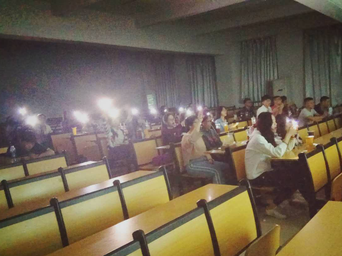 六点二十五分,同学们陆续入场,惊喜地发现桌面的各种小礼品,心理委员在这时收上了为同学们精心准备的带有学号电影入场券,同学们并不知道,一个班委们“蓄谋已久”的环节由此点着了引火线。