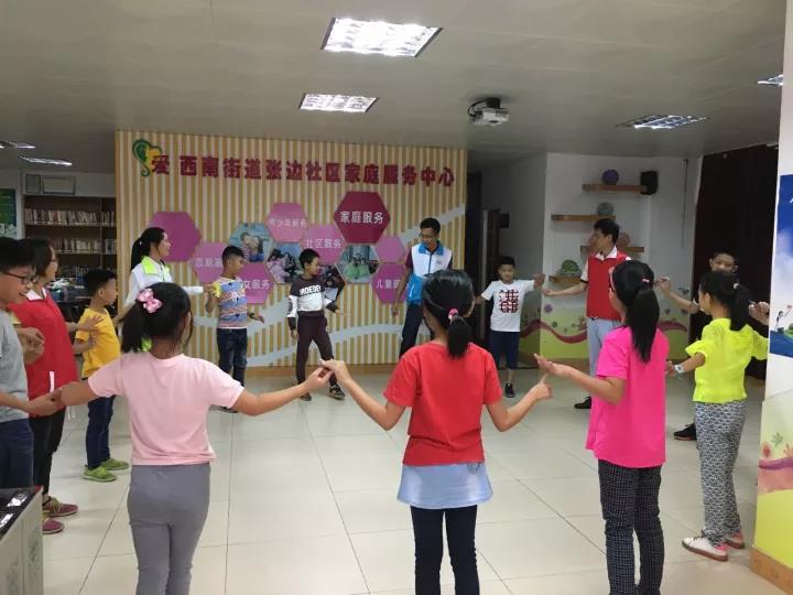 2017年9月至12月,缘梦公益团队的队员到张边新三水人服务站协助“淼童·彩虹桥”项目组开展《地球小卫士》环保大活动,共参与社区培训2次,《地球小卫士》主题活动4次。在活动中,缘梦团队形成“活动总负责人——小组指导老师——机动人员——拍摄专员”的分工。第一节活动是以团建游戏为基础,建立融洽的团队。在缘梦团队队员的引导下,小朋友们都积极的组建自己的小团队,为小团队起了队名以及创建团队口号,也大胆地表达自己的想法。在团队建设中,队员们和小朋友迅速熟悉起来,建立起深厚的友谊。