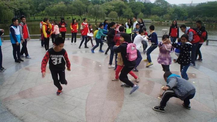 第二节活动是去西南公园开展户外拓展,要求小朋友独立完成挑战,其中最有特色的就是舞台剧表演,最轻松有趣的是捕鱼游戏。在活动过程中,缘梦团队的队员耐心引导小朋友参与活动,解决小朋友组内矛盾,也引导小朋友们在情景剧环节了解环保知识,本色出演,全场笑语不断、温情满满。