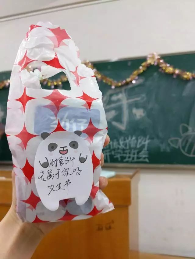 这是17级财管B4班第一次一起过的女生节,男生们早早的就准备了礼物给每一个女生,准备在今晚的班会上给女生一个惊喜。