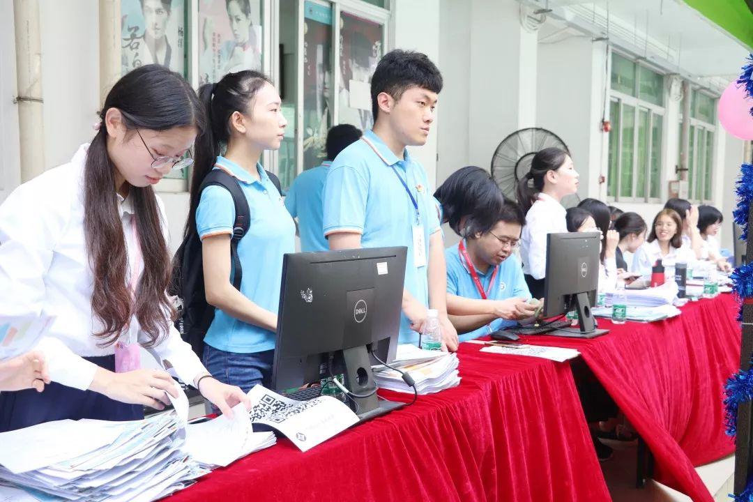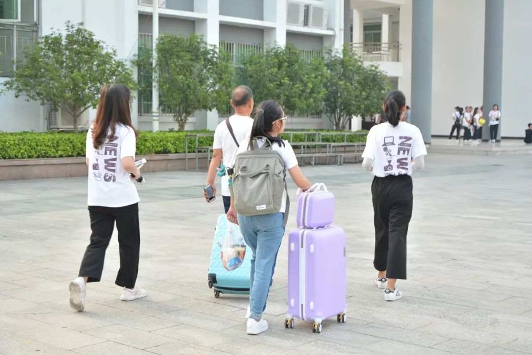 随后,一些家长以及学生陆陆续续地来到了学校,迎新工作人员热情地接待每一位到来的新生,并在接过他们的行李后,迅速地引导他们完成了登记、领取校园卡、领取校服、领取钥匙等工作,并带领他们入住宿舍。全体工作人员有条不紊地带领新生完成报到的所有程序。