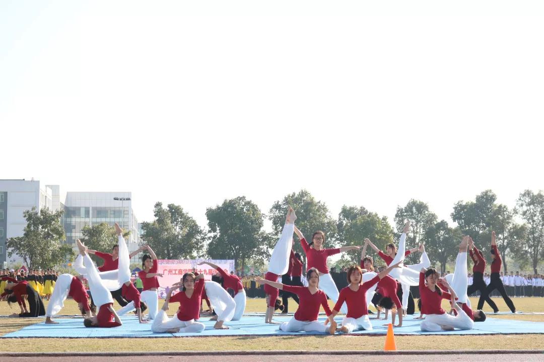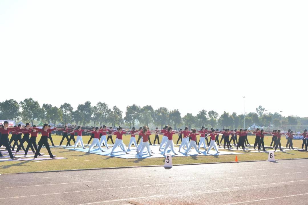 在优美的音乐下,校运会开幕表演者动作柔美,整齐流畅,精彩的瑜伽表演让现场师生感受到瑜伽的唯美。