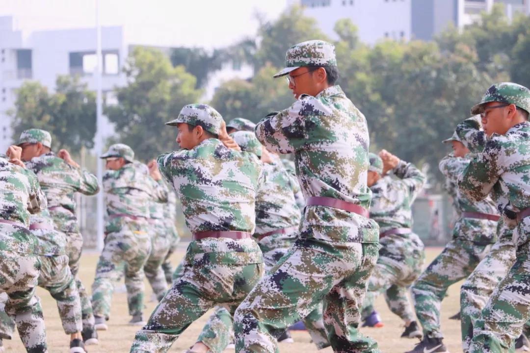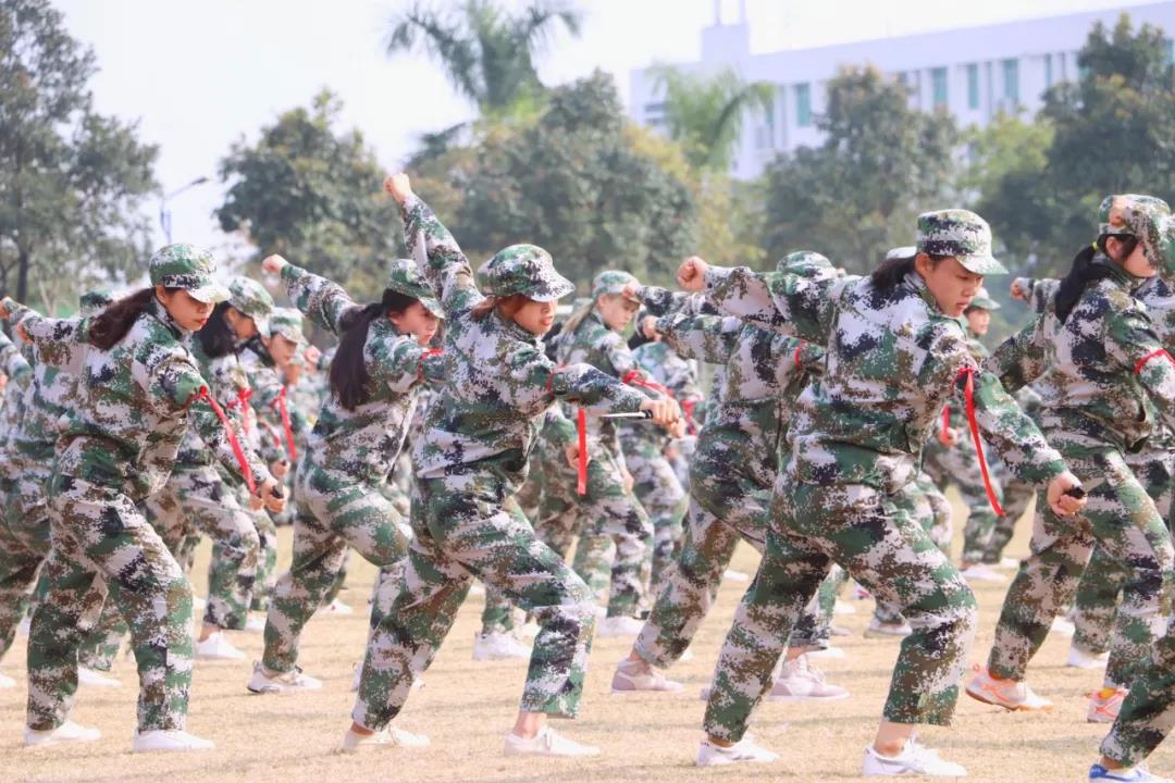 伴随着一声声口令,杀声震天的吼声,刚劲有力的动作,都是新生经过十二天军训磨练出来的。