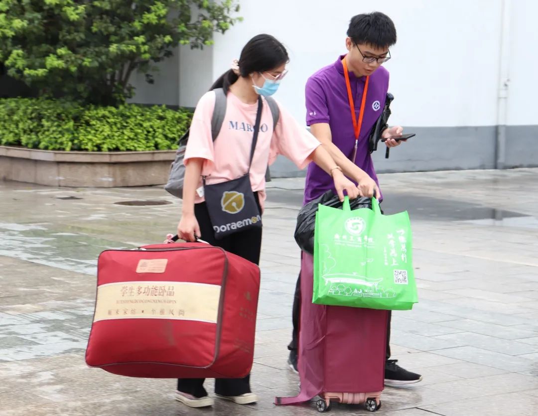 受到疫情的影响,学校为了更好地保障全校师生及家长的安全,20级萌新们需在校门口和家人分别。尽管万般不舍,但这是他们全新的开始。暖心热情的志愿者为他们拎行李,一路引领他们到大本营报到并办理入学程序。志愿者们的陪伴消去了新生们最初踏入校园的迷茫与彷徨,为新生开启了独立的大学生活新篇章。