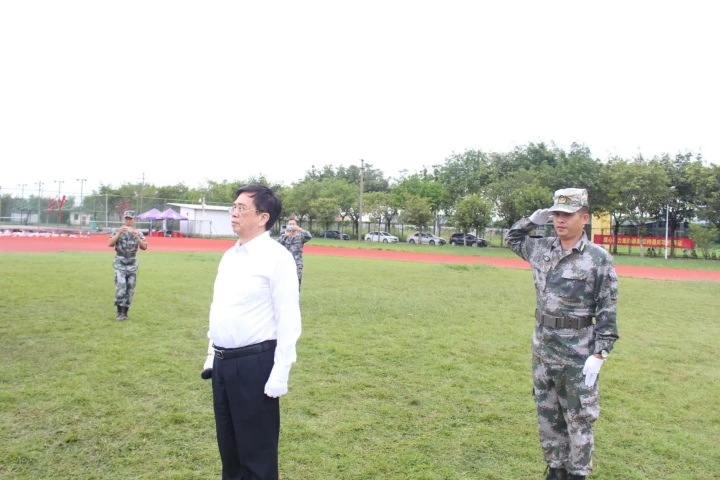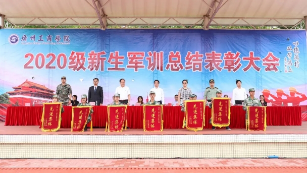 9月28日上午9时,学校田径场上军旗猎猎、口号嘹亮。2020级新生军训总结表彰大会在此隆重举行。出席本次大会的领导嘉宾有:学院院长邝邦洪教授、学院副院长乔丽媛教授、学院副院长喻勋良教授、学院副院长王日华教授、学院院长助理黄鹏同志、花都区武装部副部长旷斌同志、军训团团长王朝峰同志以及学校各职能部门、各系部的主要领导。