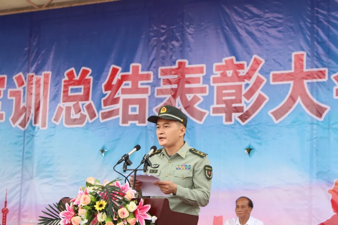 紧接着,花都区武装部旷斌副部长作出军训总结。旷斌副部长对积极参加军训并圆满完成军训的全体成员表示衷心的祝贺,并且希望同学们今后坚持以高标准高要求的准则鞭策自己。