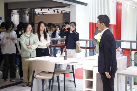 走进智能化生产车间,同学们亲眼目睹了从原材料到成品的全流程自动化生产线。广东新红阳家居科技有限公司运营总监兼财务总监陈国荣围绕“工匠精神”与“成本的奥秘”,详细介绍了企业在成本控制、流程优化与精益管理方面的实践做法。一道道工序、一个个细节,让同学们真切体会到会计数据背后的生产逻辑与管理智慧。