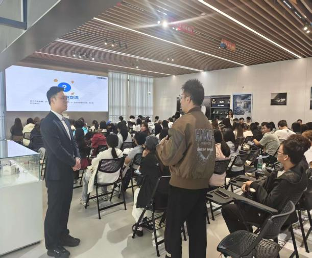 随后,广汽集团的财务总监为同学们带来了一场精彩的“研究一辆车的钱途”专题讲座,财务总监深入剖析了企业的经营战术与前瞻性战略规划,将复杂的商业逻辑娓娓道来,作为新一代会计专业的学子,同学们不仅领略了大型车企的资本运作智慧,更在理论与实践的碰撞中受益匪浅,深受启发。讲座结束后,同学们就“品牌标识如何在服务中体现价值”“智能网联技术的用户体验设计”“企业如何通过跨界合作推动创新”等问题,与财务总监进行了深入交流。提问环节不仅加深了大家对行业动态的理解,也展现了同学们扎实的专业素养与批判性思维。