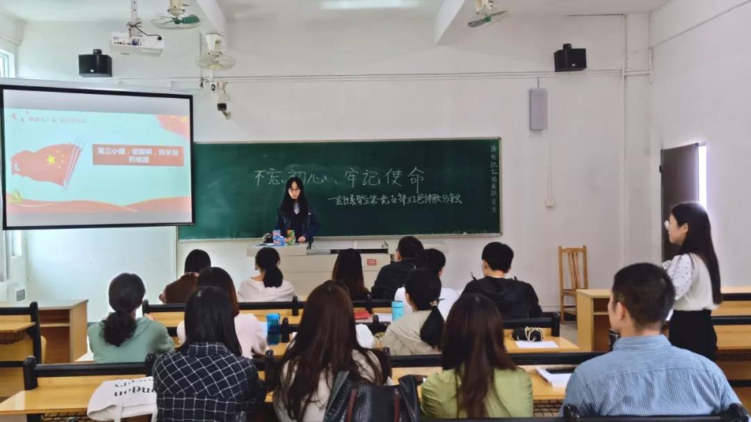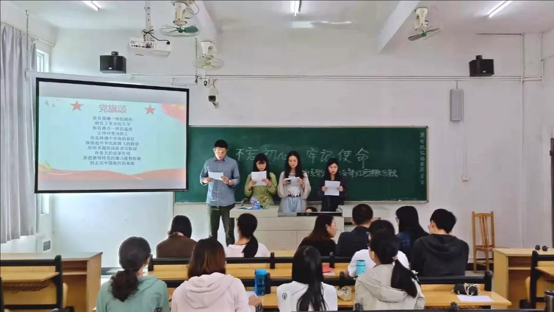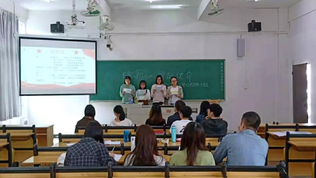 礼赞新中国,讴歌新时代。10月30日,以“青春中国,为你而歌”为主题的红色诗歌朗诵分享会在一教B401举行,活动由聂文莉同志主持,支部党员及预备党员共18人参与。