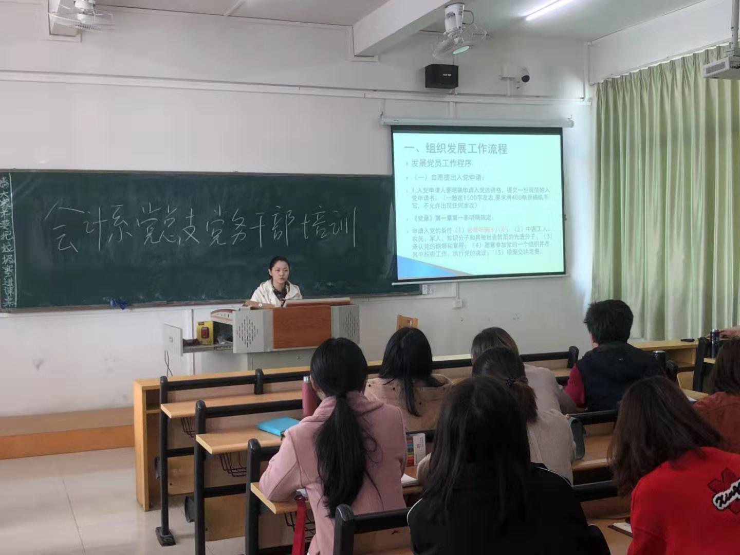 12月4日上午,会计系党总支在第二教学大楼A604教室召开党务工作规范化培训会。会计系党总支书记全桂艳同志、党总支副书记黄国威同志、宣传委员陈雍同志、组织委员王萌同志以及各党支部支部委员参加培训。此次培训由黄国威同志主持。