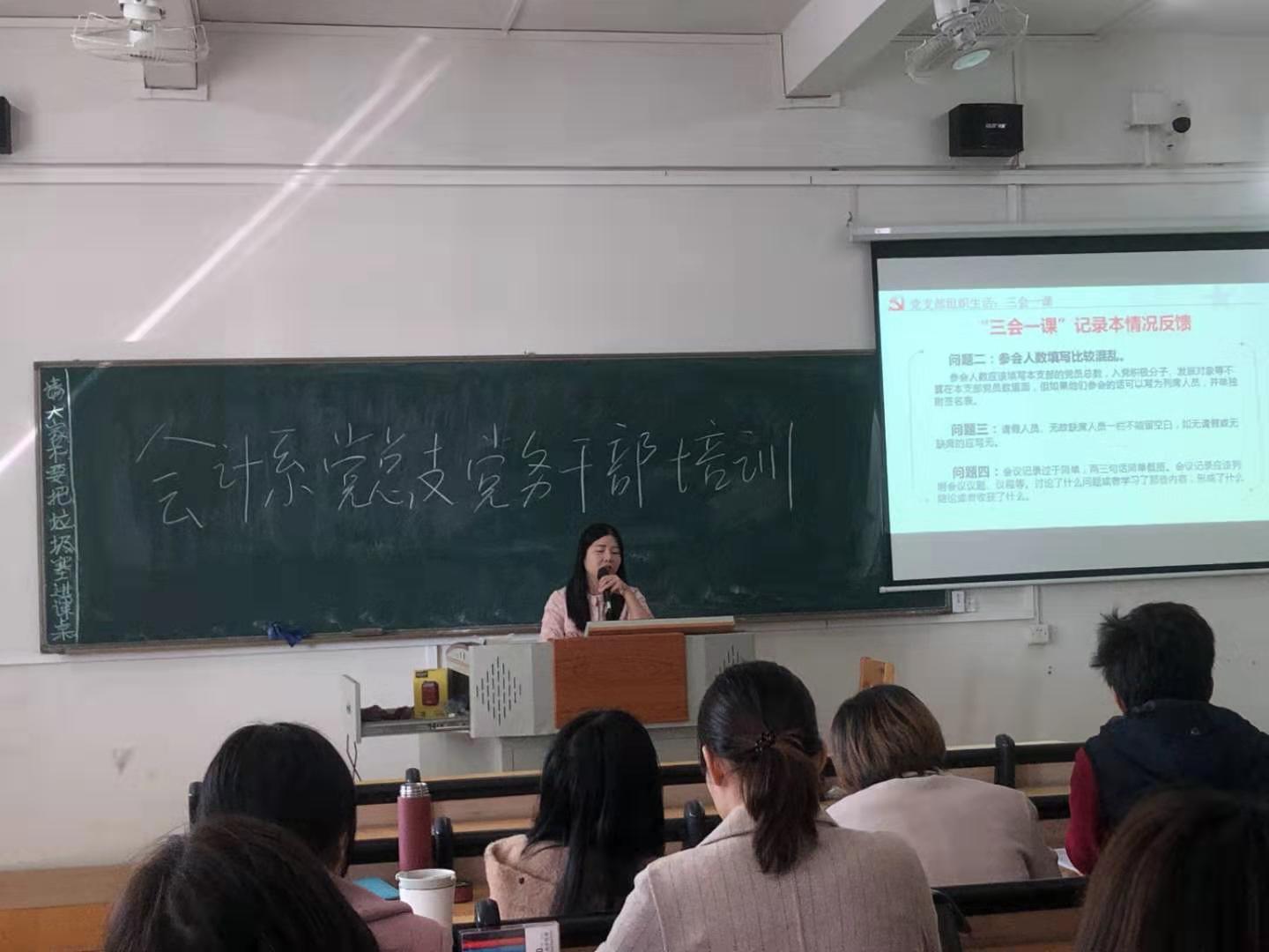 此外,会计系党总支宣传委员陈雍同志针对当前“三会一课”记录本的写作提出了整改措施。她详细解释了“三会一课”记录本中所需填写的会议类型、参会人数、会议内容等方面的规范问题。